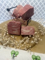 Tallow, Distilled Water, Olive Oil Pomace, Coconut Oil, Sodium Hydroxide (lye), Kokum Butter, Castor Oil, Shea Butter, Coconut Cream Powder, Rose Clay, Lotus Flower fragrance oil & Love!!!